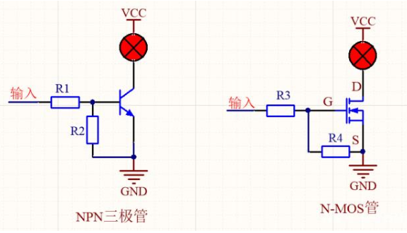 NPN三極管與N-MOS管當(dāng)開關(guān)管原理