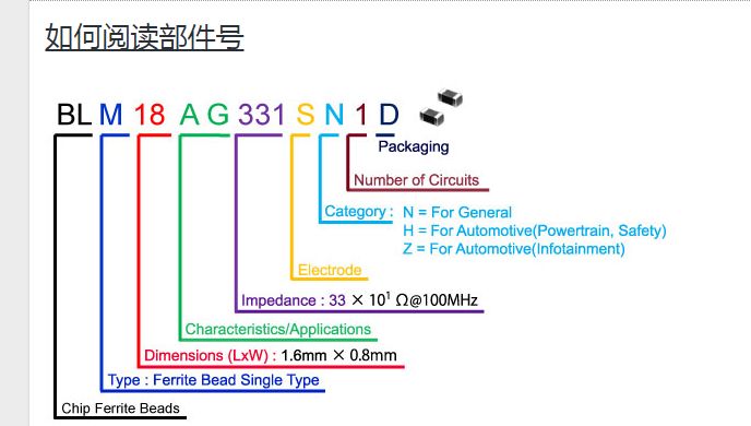 以型號BLM18AG331SN1D為例說明磁珠的命名規(guī)則